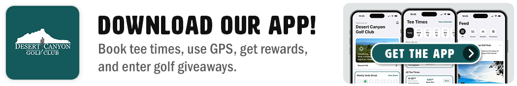 This Black Friday, get ready for exclusive giveaways available only for 24 hours through the Desert Canyon Golf Club app! Enter using your Canyon Cash or Yards earned right from the app for a chance to win exciting prizes. Don’t miss your shot — entries open for one day only, so make sure your app is updated and your Yards are ready to spend!